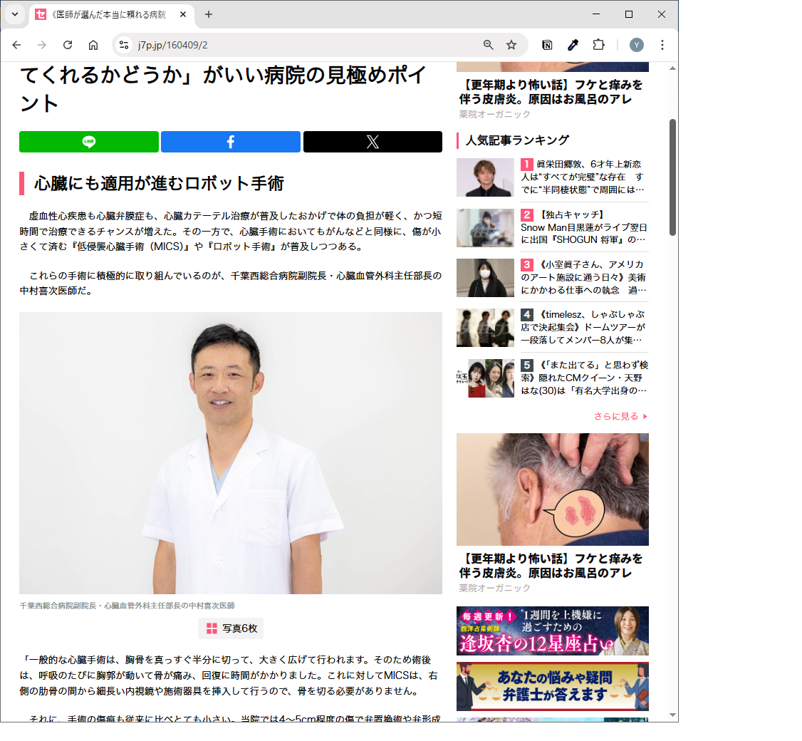 2026.01.16中村副院長が取材を受けました。「女性セブン」名医が選んだ本当に頼れる病院心臓血管編