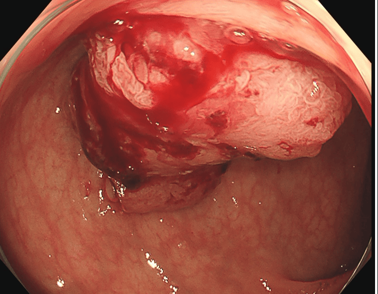 肛門から挿入したスコープ(カメラ)でがんのある部位を切除します。おなかを切ることがないため、術後の痛みがほぼなく、入院期間も短かく済みます。がんが粘膜内にとどまっている場合のみ適応があり、それよりも進行している場合は手術をはじめとした他の治療が行われます。