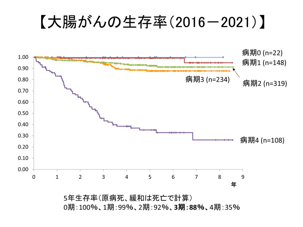 各病期において、全国平均に比して良好な成績を得ております。