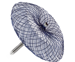 3.右心房側のディスクを開き、2枚のディスクで挟み込みます