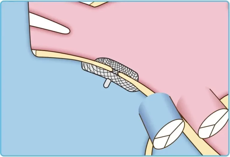 経皮的卵円孔閉鎖術は卵円孔開存症(PFO)の低侵襲治療です。外科手術と違って開胸して、一時的に心臓を止める処置は行いません。その代わりに医師はカテーテルといわれる細い管を使用して、大腿静脈から心臓にアプローチします。用いるデバイスは、留置すると円盤状になるもので、これで右心房側と左心房側の双方から挟み込むようにして卵円孔をカバーして塞ぎます。